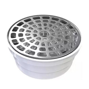 Cuerpo fabricado de ABS material altamente resistente y compatible con tuberías de PVC, realizando una instalación hermética y segura. Cono fabricado de polipropileno, rejilla con cubierta de acero inoxidable calibre #30, resistiendo hasta 300 kg. Broche “click” permite destapar la rejilla fácilmente para su limpieza, sin necesidad de herramientas. La circunferencia de la coladera es de 5.169 pulgadas. Al ser universal se conecta a conexiones de 2”, 3” y 4”, también a tubería directa de 4 pulgadas. Trampa extra- larga que evita malos olores. Válvula Check Anti-Olores fabricada de ABS, su función es evitar el ingreso de malos olores, virus e insectos provenientes del drenaje. Cuenta con un flujo de agua de 18 litros por minuto. Coladera ideal para baño y medio baño.