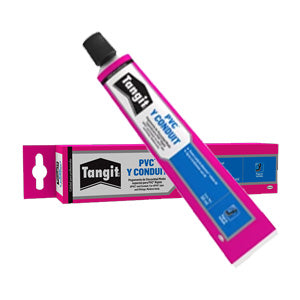 Pegamento Tangit azul. Pegamento especial para PVC rígido, adhesivo especial para conseguir uniones resistentes y duraderas. Adecuado para unir tuberías sometidas a presión regular. Certificado bajo la norma ASTM D-2564.