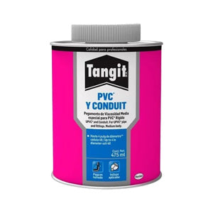 Pegamento Tangit azul. Pegamento especial para PVC rígido, adhesivo especial para conseguir uniones resistentes y duraderas. Adecuado para unir tuberías sometidas a presión regular. Certificado bajo la norma ASTM D-2564.